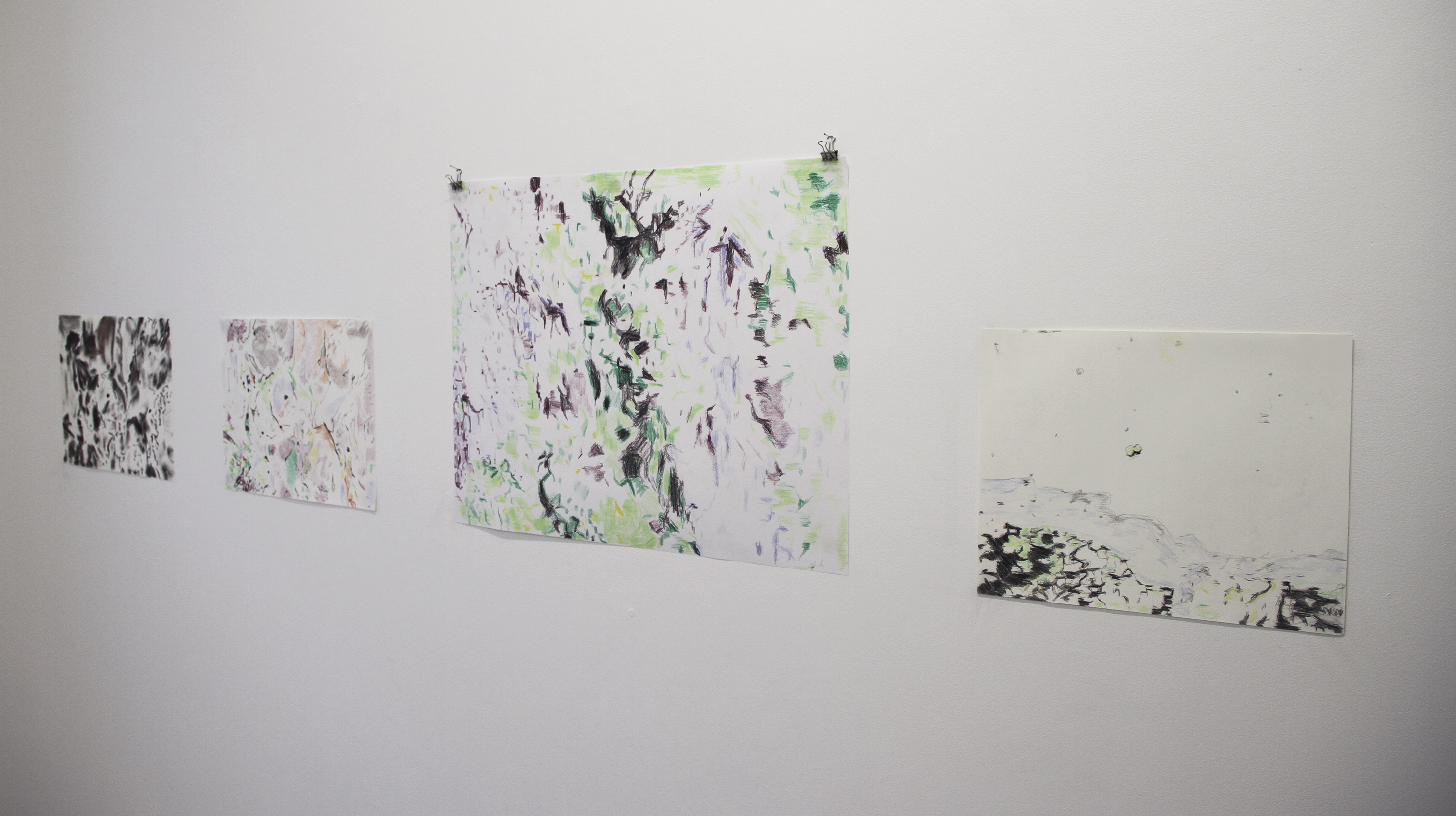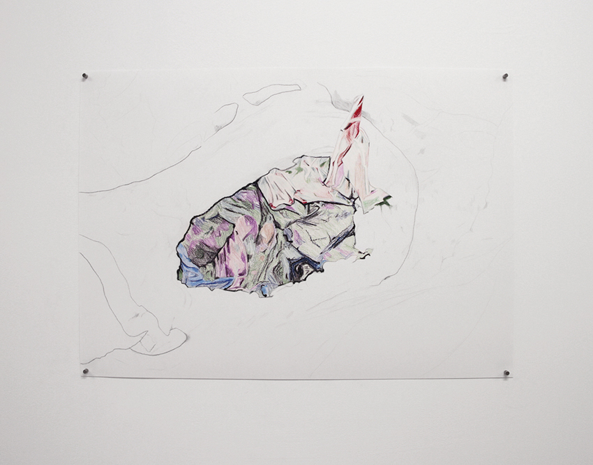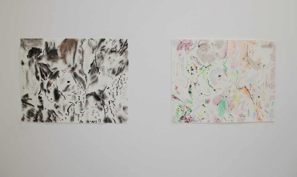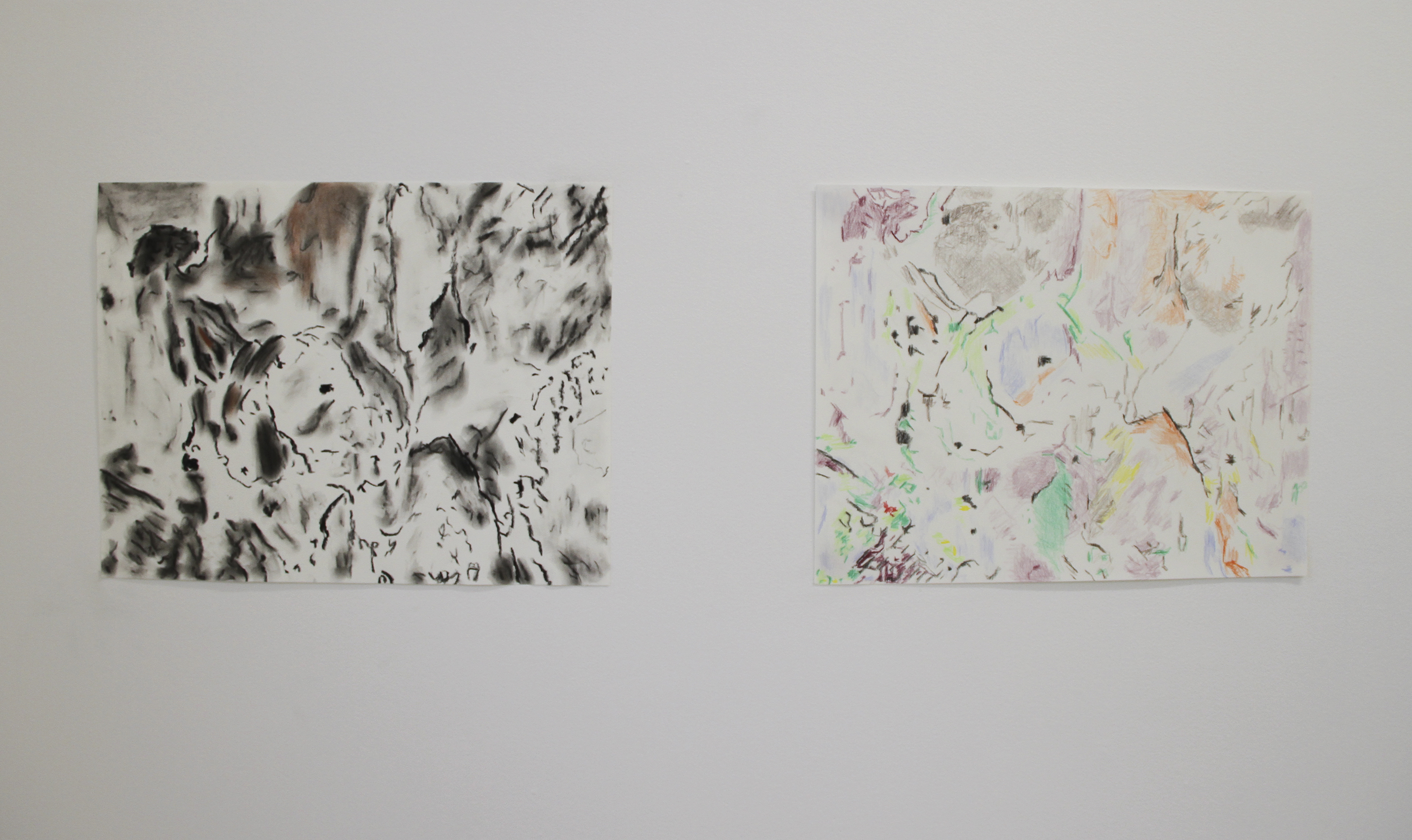 Pencil, colour pencil, charcoal and crayons on paper.