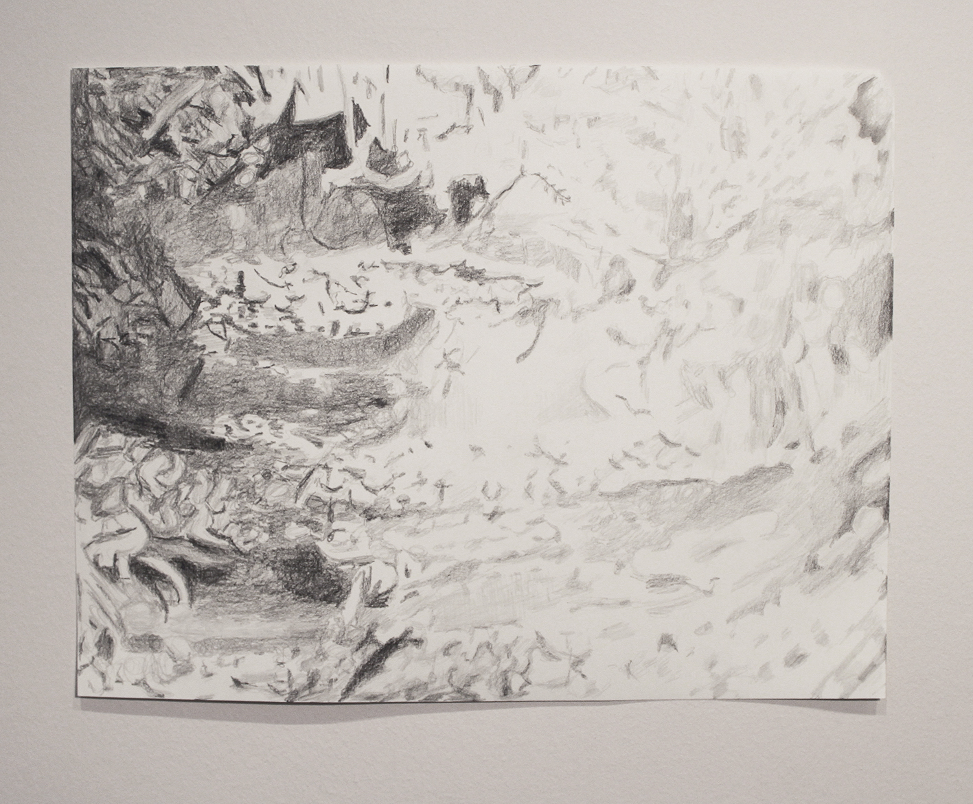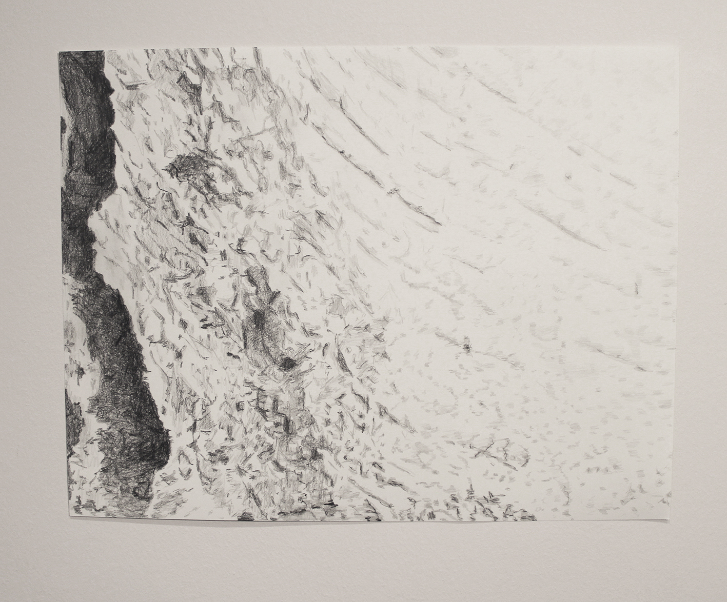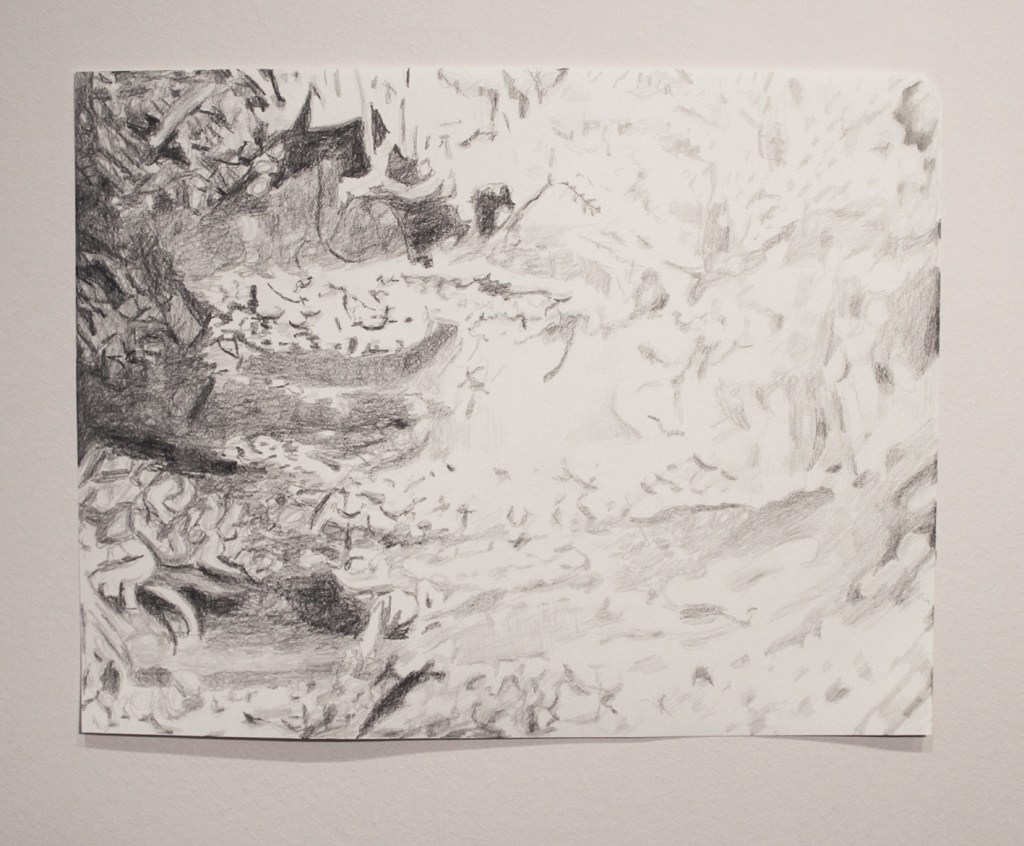 Paperbark cherry tree close up 1/ Tett inntil et Neverkirsebærtre 1, 38×29 cm Pencil on paper.